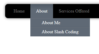 <ul id="Menu"> <li><a href="#">Home</a></li> <li><a href="#">About</a> <ul> <li><a href="#">About Me</a></li> <li><a href="#">About Slash Coding</a></li> </ul> </li> <li><a href="#">Services Offered</a></li> <li><a href="#">Partners</a></li> <li><a href="#">Offers</a></li> <li><a href="#">Contact Me</a></li> </ul>