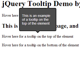 In the HTML part, we just need to create a mock-up page which will display the jQuery tooltip when hovered on. For this, I will create 2 different span tags, that will show a tooltip at the top and bottom respectively. To do that, create a new page and paste the following contents on to that page.